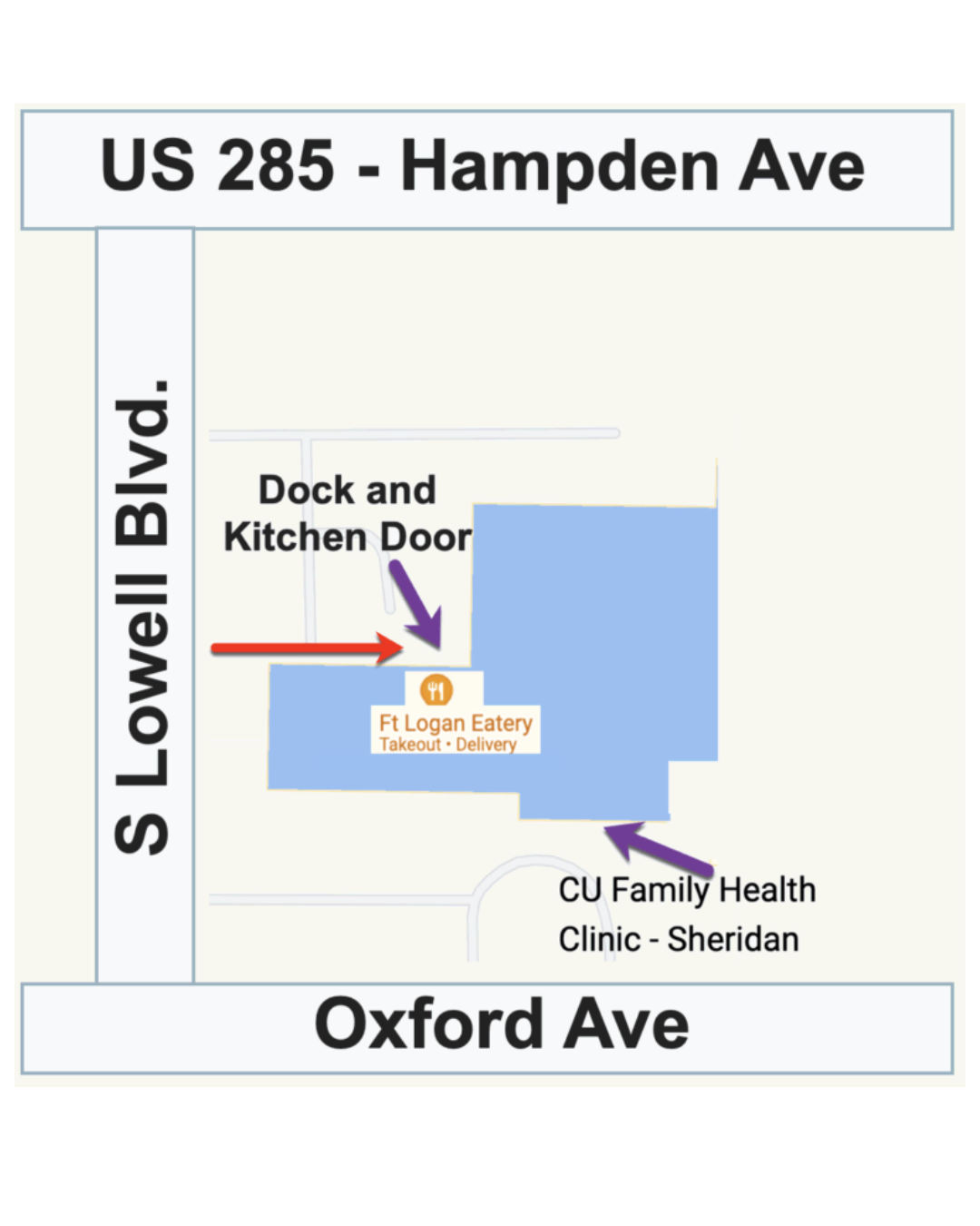 Please RSVP for this event so we can plan accordingly. We will send you information with detailed directions. Graduation will be at the Ft Logan Eatery Kitchen, behind the Sheridan CU Family Health Clinic at 3525 W Oxford Ave, Denver, CO, 80236 Turn into our driveway just before Oxford and go to the back dock and text us at (720) 772-1715 If you have trouble, text or call us at (720) 772-1715.